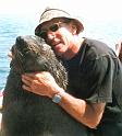 Pelikane und Robben gesellen sich zum Boot. Die Robben springen auch auf das Boot und freuen sich über frischen Fisch vom Skipper.