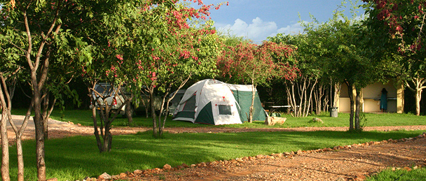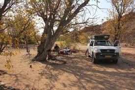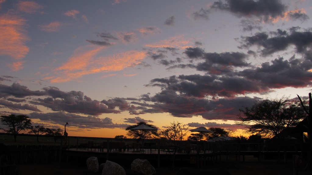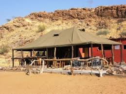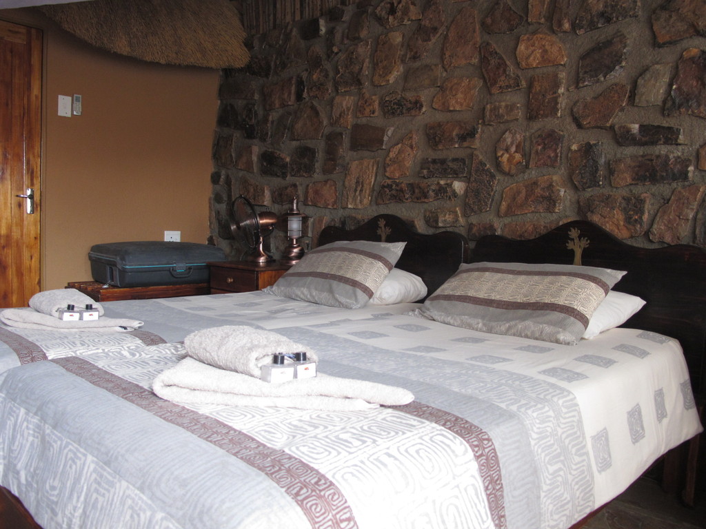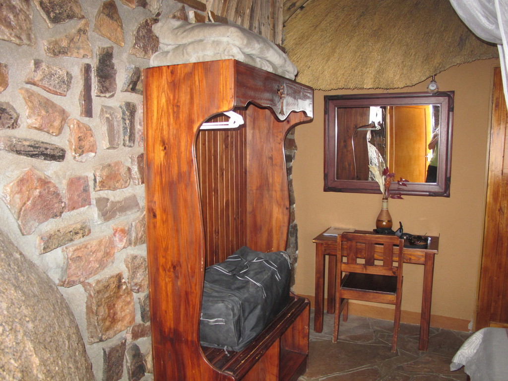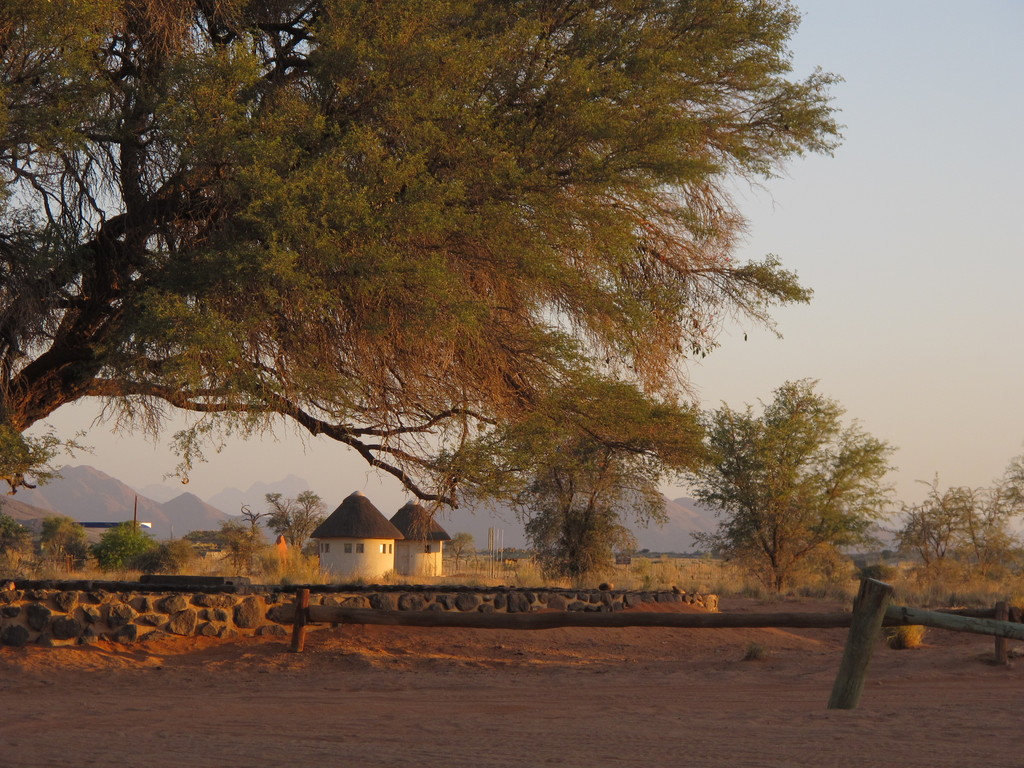 Kein Strom, aber eher ruhige und private Campsite, nette Sundowner Terasse und Restaurant : Abendessen 180N$ und Frühstück 70N$, Lunch à la carte.